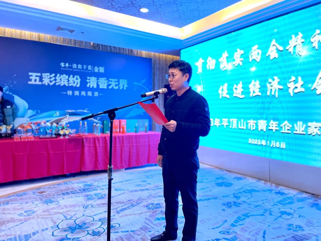 1月6日下午,2023年平顶山市青年企业家协会年会在平顶山市新城区九天鹤酒店顺利举行。平顶山市团市委副书记宋俊昌,中国书法家协会会员、平顶山市书协副主席刘根,中国书法家协会会员、平顶山市书协理事戴志德等领导,青年企业家协会会长王腾飞以及青年企业家协会会员等共同出席。