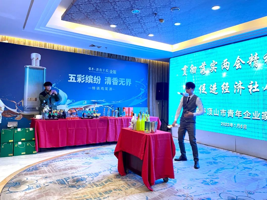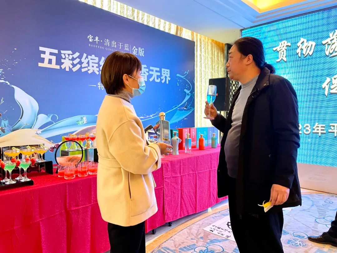 本次年会是为了加强平顶山市企业家会员之间的交流,增强团队协助合作意识,激发企业会员释放创新活力。宝丰酒业作为此次活动的赞助单位,在年会现场精心布置了产品展示区、特调鸡尾酒品鉴区等,生动展现了清香名酒的独特魅力,前来观摩、品鉴的嘉宾络绎不绝。书法家戴志德品鉴了由宝丰酒调制的鸡尾酒后表达了充分地肯定,并现场赠送墨宝一副。