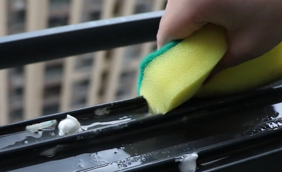 静置时间到了之后,我们拿出一块百洁布来给它擦拭一下,食盐摩擦力可以使得窗套上面的污渍更好的被清洁下来,啤酒和牙膏他们俩清洁效果都是非常好的,而且啤酒还非常容易挥发掉,