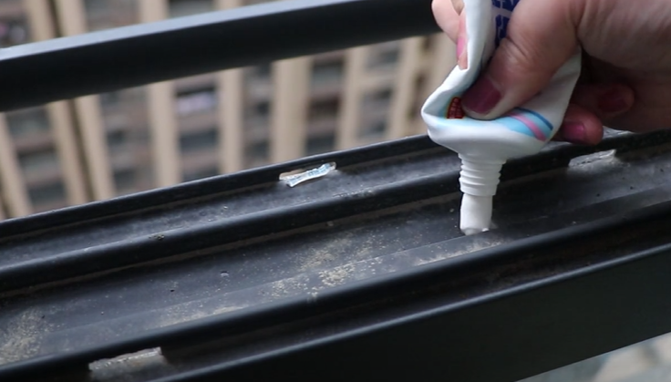 首先,我们要准备牙膏,将牙膏挤一些在窗台缝隙。