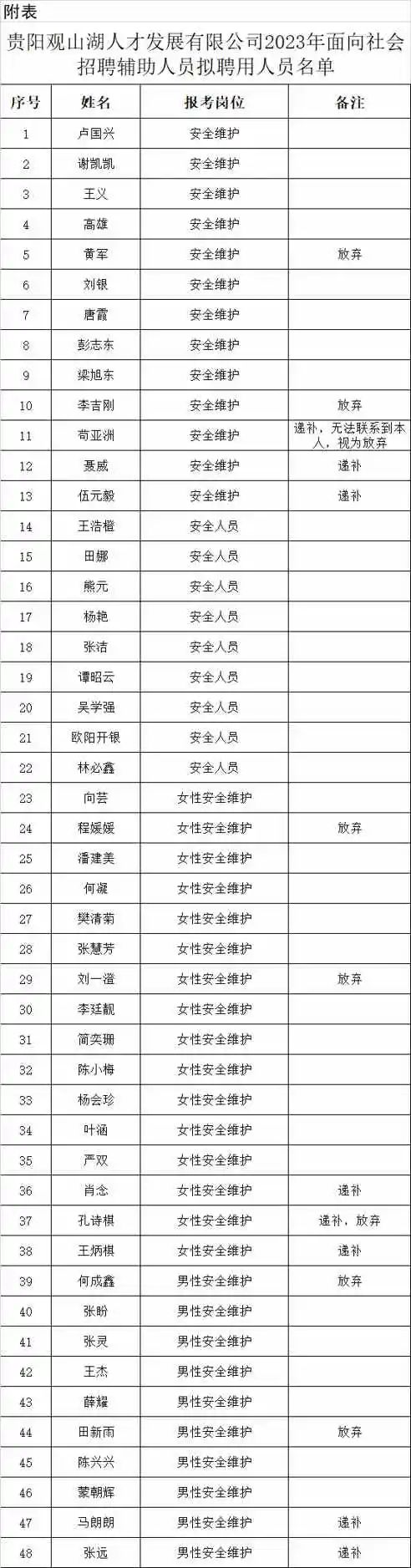 拟聘公示 | 贵阳观山湖人才发展有限公司2023年面向社会招聘辅助人员拟聘用