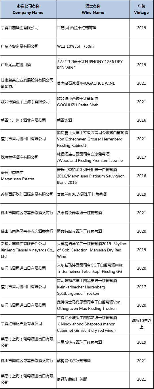 经过19位专家评委的专业评审和复审,第26届IGC大奖赛最终评选出128款获奖酒款,其中葡萄酒双金奖5款,金奖20款,银奖59款,铜奖10款,产区最佳奖6款,葡萄品种最佳奖8款;烈酒双金奖1款,金奖3款,银奖6款,铜奖10款。下面让我们公布今年完整的获奖名单。
