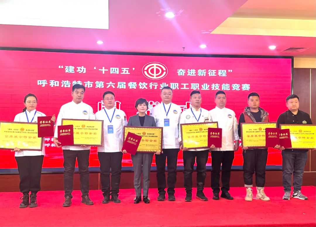 此外,呼和浩特新东方高级技工学校也荣获:优秀组织单位奖项,单位突出贡献奖项,团体宴席金奖,团体宴席展台特金奖!