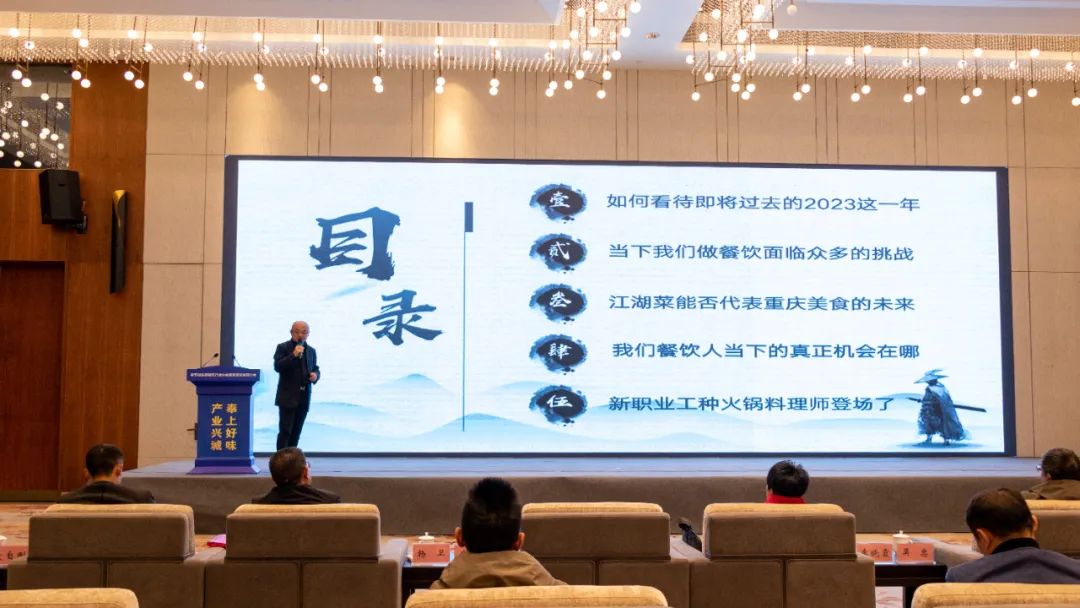 奉节县政协副主席、县工商联主席(县总商会会长) 杨卫对现场嘉宾以及参会企业表示了热烈欢迎,他说过去的数年,奉节住餐行业转型升级,寻找新机,稳中求进,走出了新模式、新思维、新亮点。希望奉节住餐行业在未来的发展中,能够以优质产业链帮助产业降本增效,不断推动产品升级、品牌升级、产业升级,提升企业的核心竞争力和抗风险能力,推动奉节住餐业的可持续高质量发展。他表示,此次研讨会是为了融合当地优势资源,探寻住餐业市场新变化,希望能够借此机会,融合区域优势资源,搭建合作交流平台,深度契合和贯彻落实乡村振兴发展战略,担负乡村振兴、产业振兴、实体经济振兴的新使命,推进奉节住餐业发展的新征程。