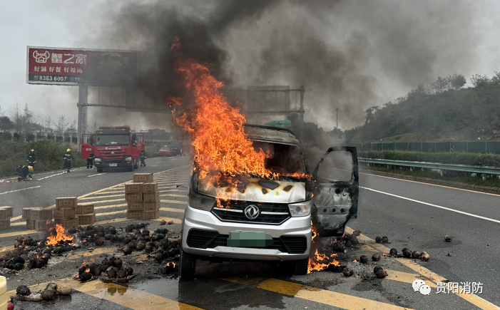 真的“醉”了!载满白酒的小货车贵阳高速路上突发自燃