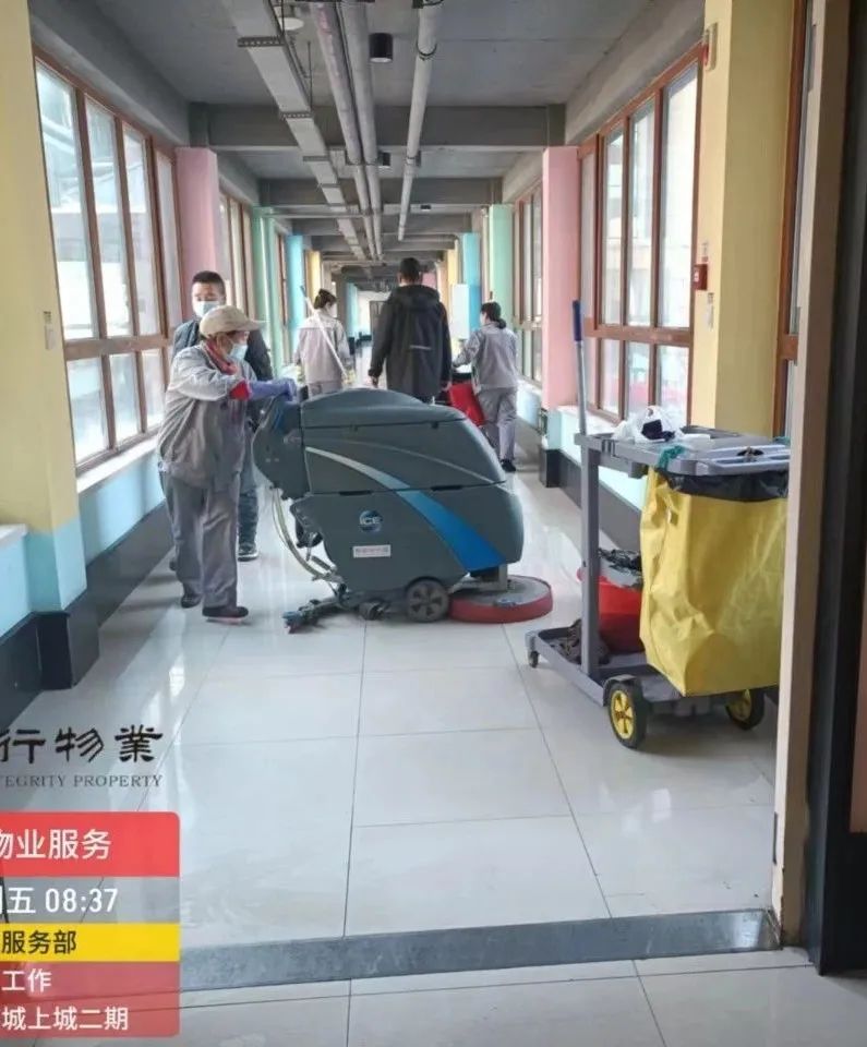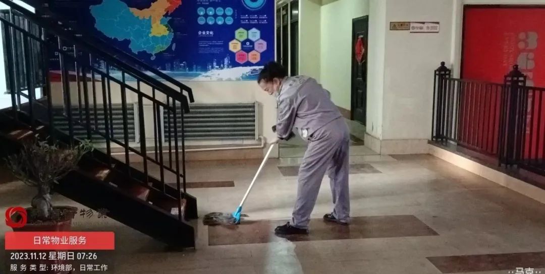 五、持续完成二楼连廊的擦拭工作。