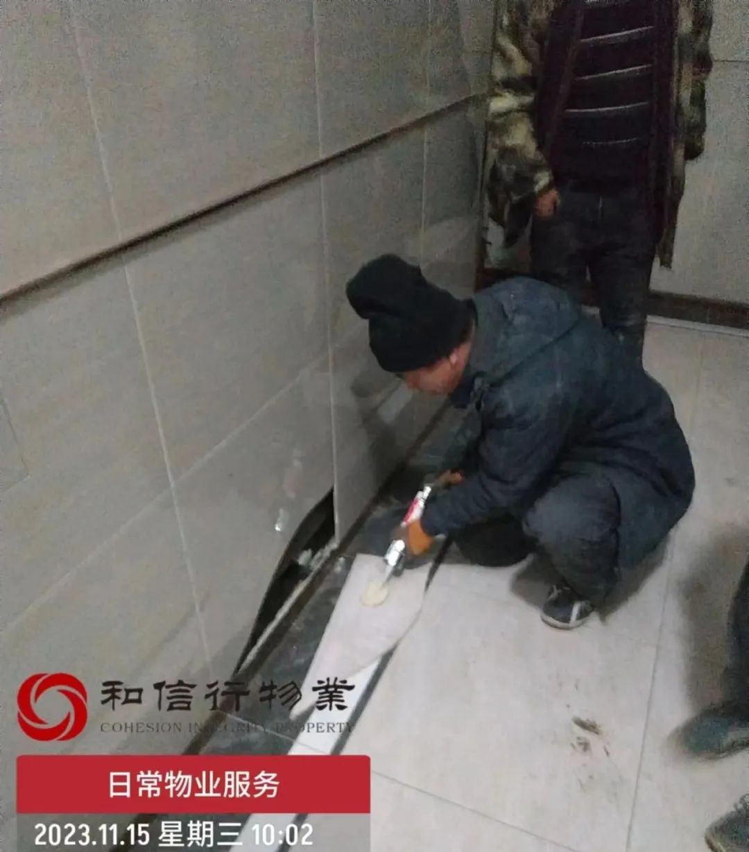 四、园区松动及脱落墙砖、地砖修复:40余处;