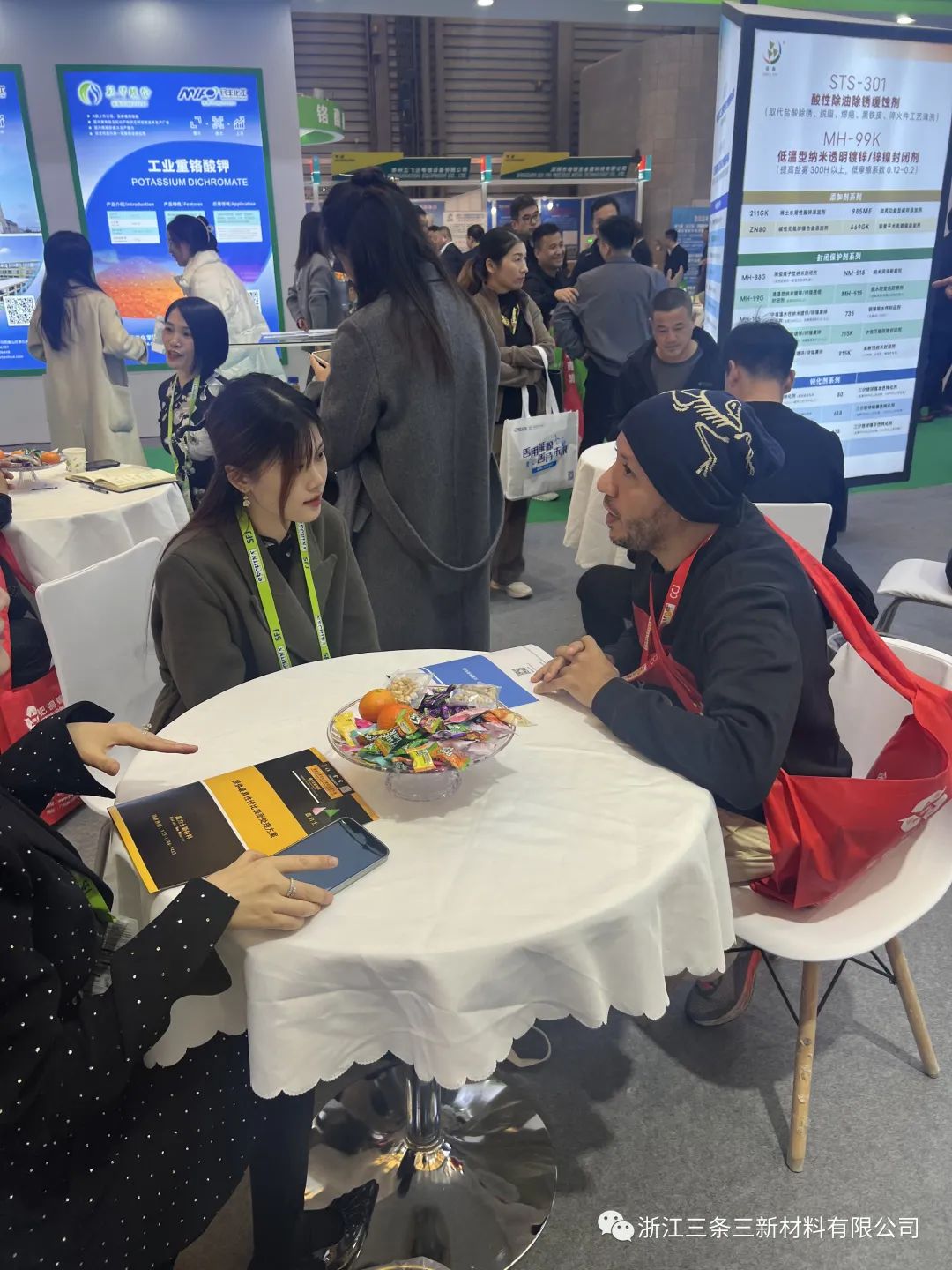 在展会开展期间,三条三新材料的展位座无虚席、人来人往、济济一堂,我们以最饱满的热情和诚意接待每一位客户,同时也吸引了众多参观者前来咨询。我们本着“共建、共享、共赢”的理念,认真解答每一位客户提出的问题,在与外国友人等参观者及业内专业人士的交流中,我们也收获了宝贵的意见。