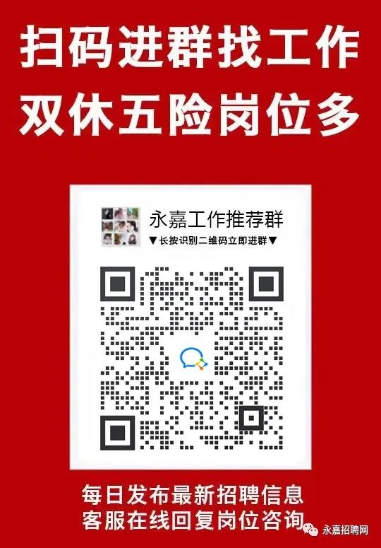 ↓↓↓点击关注获取永嘉招聘信息↓↓↓
