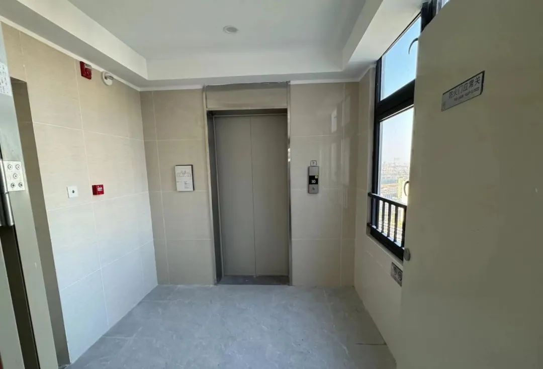 项目的电梯较小,公区都有瓷砖全部铺设,不过进入每一户的出口都是大白墙。