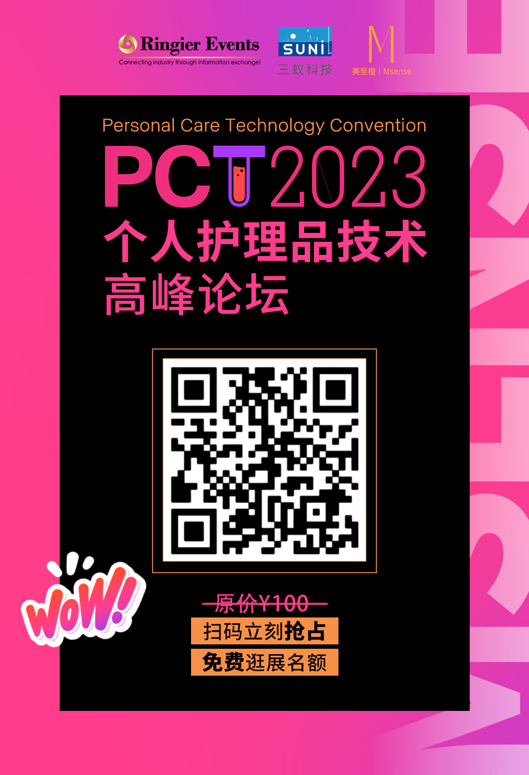 美至橙Msense作为展会的特别合作媒体,将联合展会主办方荣格工业传媒,协办方三蚁科技,邀请美妆产业专家、知名企业以及行业代表共同参与PCT 2023个人护理品技术高峰论坛,通过汇集专业视角,探索科技赋能下美妆产业可持续发展的未来路径。