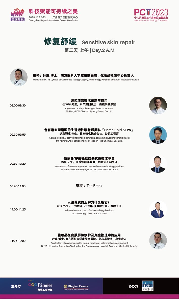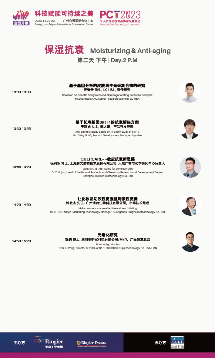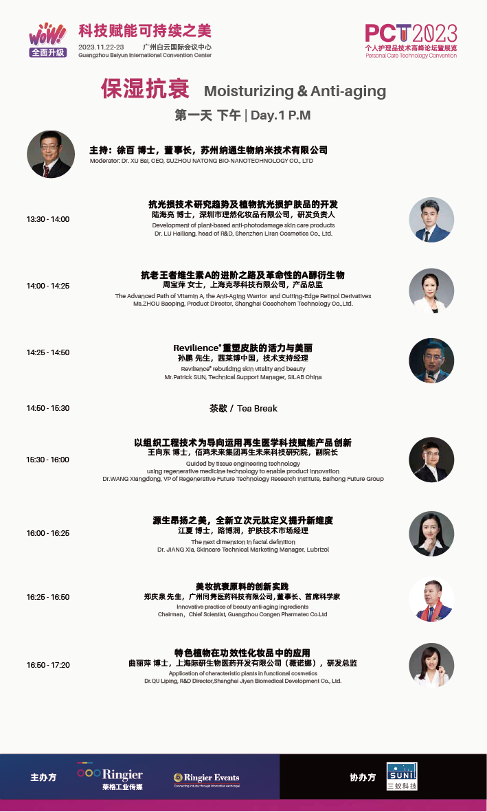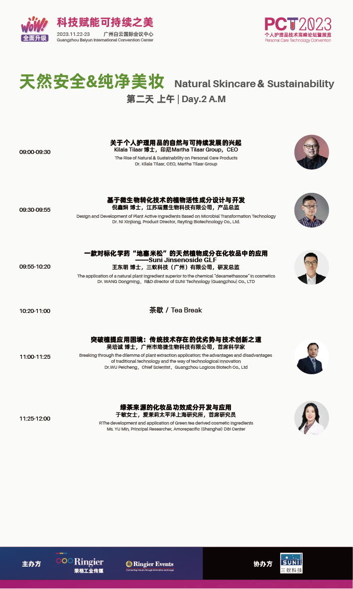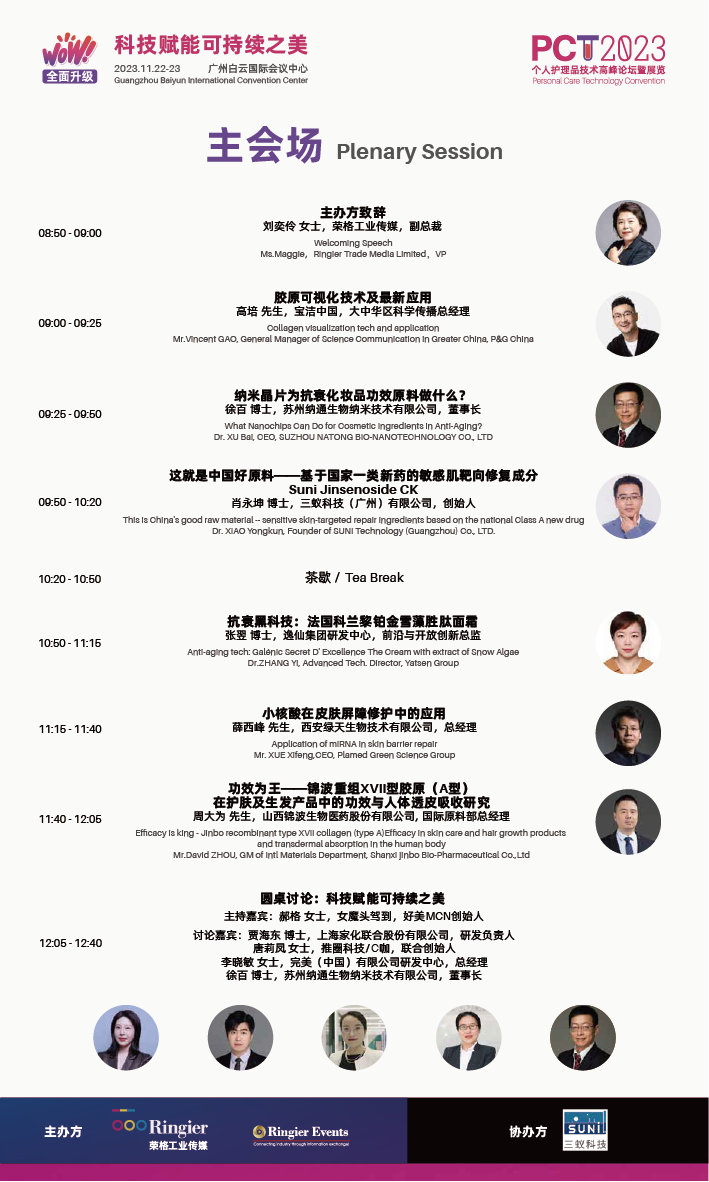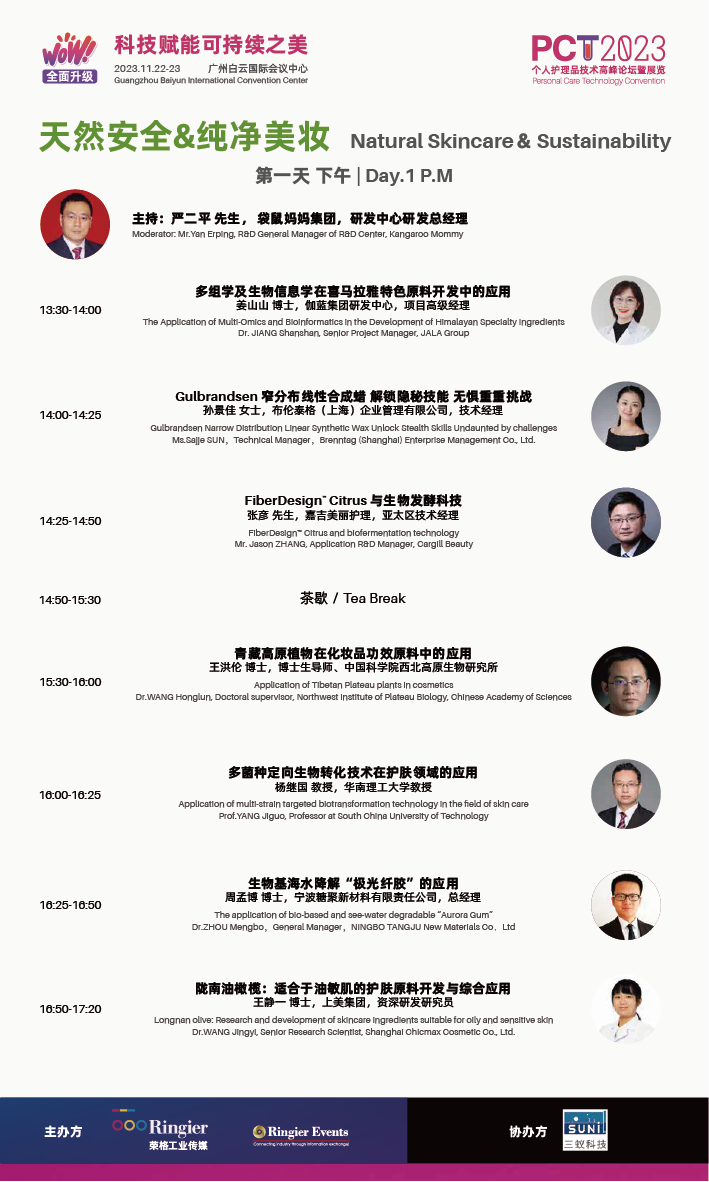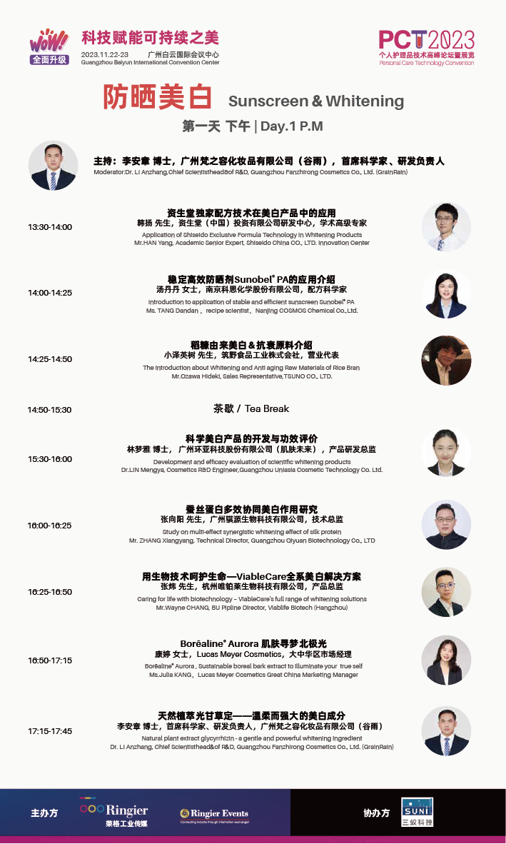 11月22日-23日,PCT 2023 South China 个人护理品技术高峰论坛暨展览(广州站)(以下称PCT 2023 广州站)即将在广州白云国际会议中心开幕。