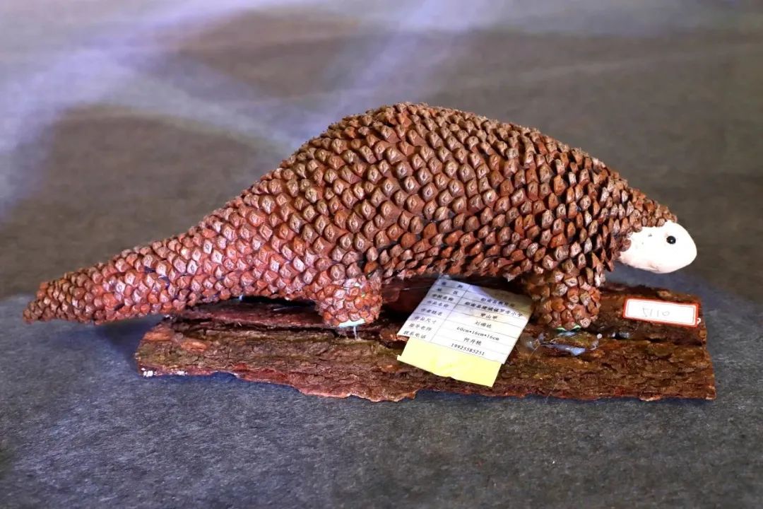 作品简介:用铁线、橡皮泥、松果等粘成