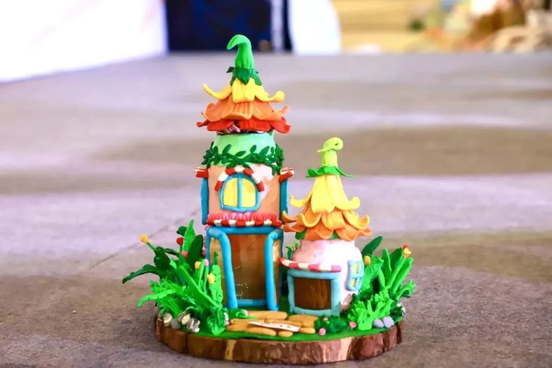作品简介:本作品是一件软陶作品,用色彩缤纷的软陶赋予玻璃饮料瓶新的生命力,成为漂亮的楼房,温馨的家。拧开屋顶,打开灯,温馨的灯光洒满了小屋。大门还可以随意打开或关闭。周围是茂密的草地,五颜六色的鲜花点缀在住宅前后。让人犹如置身于童话里的梦想世界,表达了作者对美好生活的向往 。