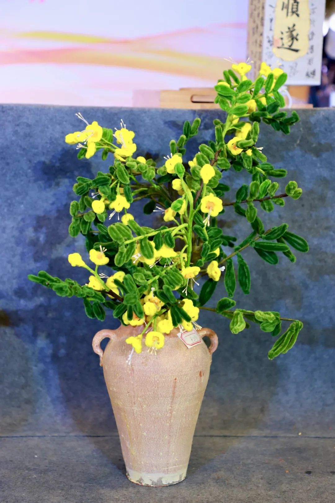 作品简介:本作品主要通过用黄色和绿色的扭扭棒来表现黄槐和决明子的植物特征,在制作手工的基础上,不仅具有观赏价值,还能认识到中药植物,宣传云浮南药的中医药文化。