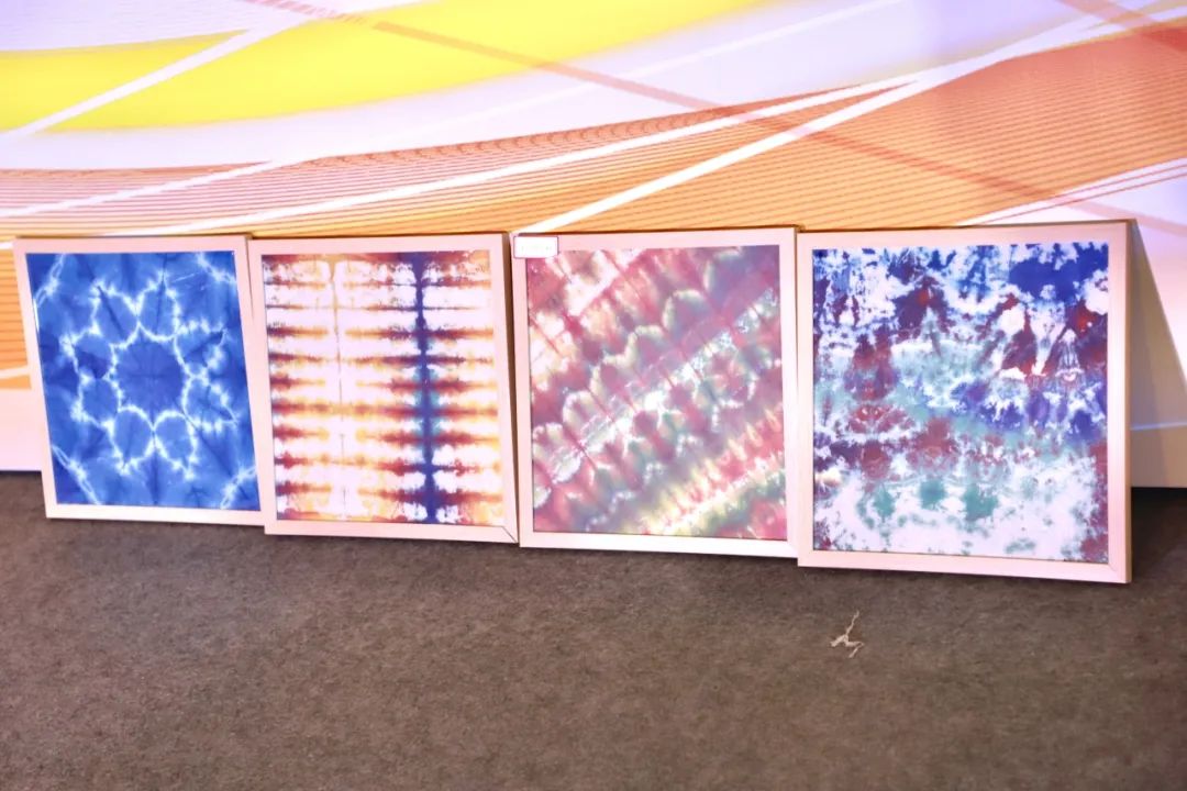 作品简介:用黄豆粉搅拌成糊状,把模版放在平铺在桌上的布上,晾干后放进板蓝根配制而成的绿色染液中,晾干刮掉防染剂,洗净凉干。清雅、朴素,青出于蓝而胜于蓝,所选图案寓意“一鸣惊人、马到成功等”。