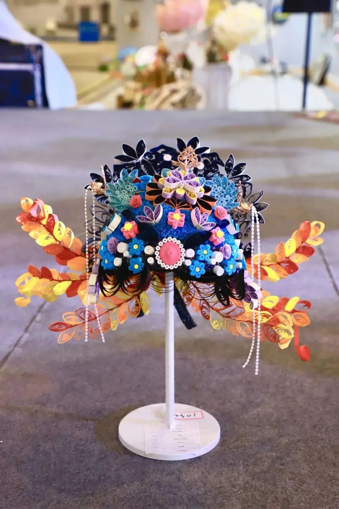 作品简介:衍纸是一种简单而实用的生活艺术,运用卷、捏、拼贴组合完成,通过衍纸制作点缀凤冠。