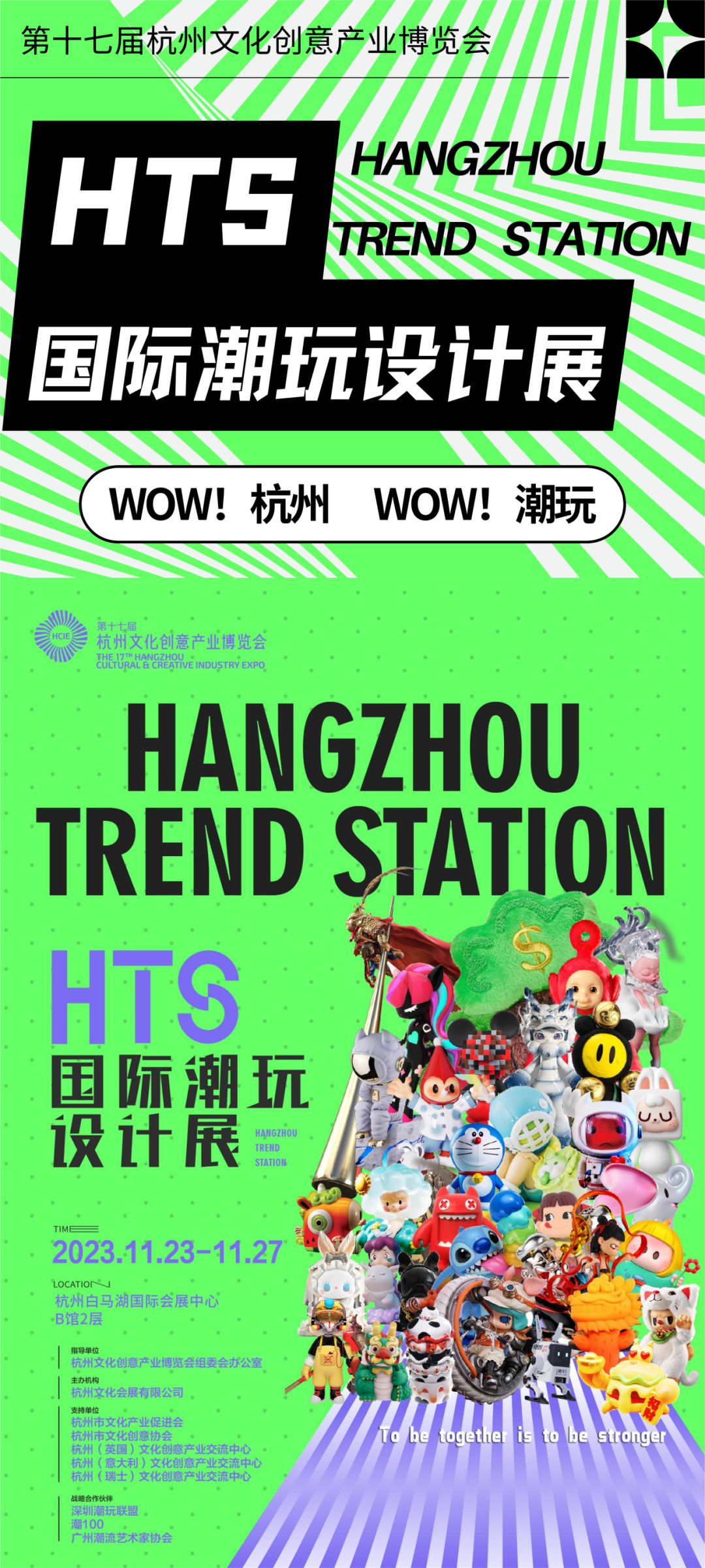 11月24日(周五)13:00—16:00,在B馆中庭舞台区,还将开展HTS国际潮玩设计展·新生浪潮论坛,论坛将会邀请潮玩联盟会长,潮流艺术家,HTS策展人東明Tony,POP SUNDAY主理人陈睿,华风少女、怪兽甜心|傀儡娃娃IP的创始人主理人欢叔,中国潮玩艺术家、“轻艺术”倡导者、漫画家魏一番,超物创始人,CHAO STAR主理人,潮流艺术家超吾 chao Woo等知名的潮玩设计师、投资商和品牌企业共同探讨潮玩设计的未来趋势和发展机遇。