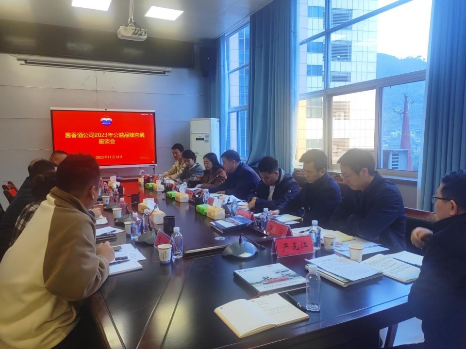 为进一步提升酱香酒公司品牌知名度和美誉度,按照茅台集团“公益品牌一盘棋”思想要求,11月14日,酱香酒公司在三楼会议室召开了2023年度公益品牌座谈会,贵州省慈善总会、青基会相关负责人,茅台公益基金会、贵州大曲公益基金管委会成员,茅台集团党委宣传部副部长丁娜,酱香酒公司党委副书记、总经理陈宗强出席会议。