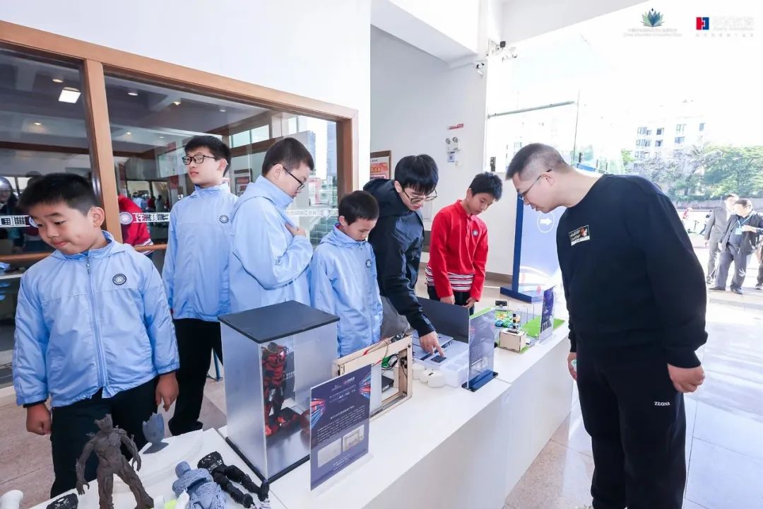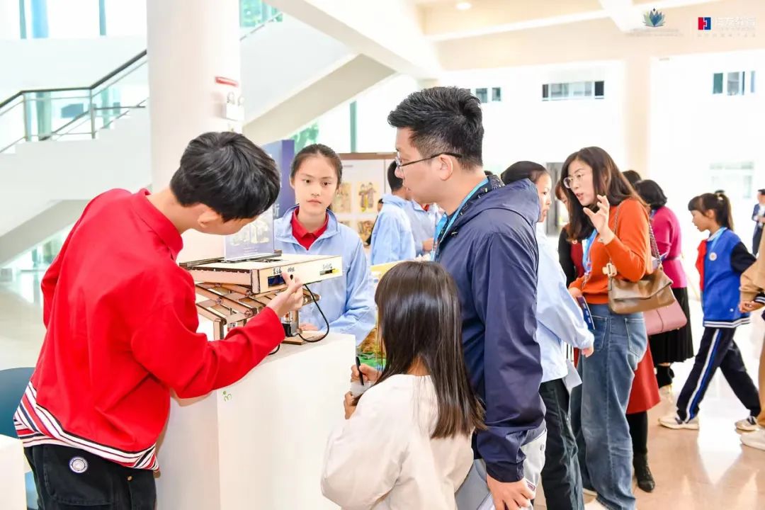 教博会珠海容闳学校分会场以“科学艺术劳动之融合·创造·生长”为主题,聚焦“五育”融合时代的教育课题,关注完整的人的培养,把学生科学探究、艺术审美、劳动价值观等素养培育融为一体,以有形、可感、互动的方式,开展丰富多彩的交流活动。分会场展出了声控机器人、智能宠物喂养器、天宫机器人、封泥、篆刻、泥活字、木版年画、陶艺、扎染等学生作品,为观众呈现了一场精彩的教育盛会。