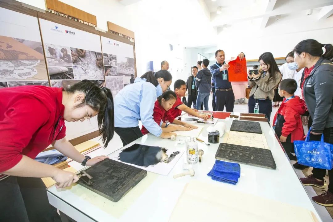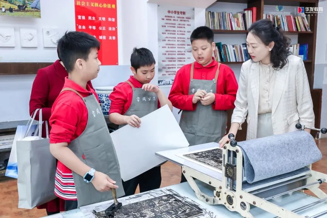 华发教育旗下学校和幼儿园的美术常态课堂植根于中华优秀传统文化,将传统手工艺技法融入教学课程。在版画课堂现场,孩子们动手雕刻、印制,在印版上放飞想象,体验不同色彩的混合和层叠,领略版画中自然简洁、朴实雅拙的美。