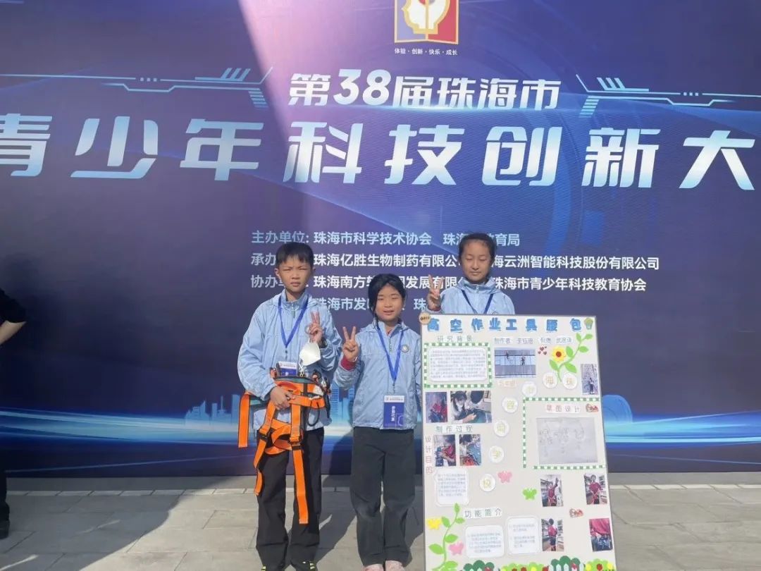 一次看售后叔叔们室外安装空调的经历,启发学生武泯译、倪瓒和李钰珊设计出“第三只手”。这个能系在腰间的高空作业智能工具收纳包,能精准分类及回收工具,大大提高户外高空作业的安全性和工作效率,让参会的家长忍不住夸赞:“只有观察生活足够细致,才能创作出这样高实用性的作品。”
