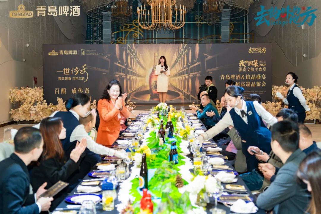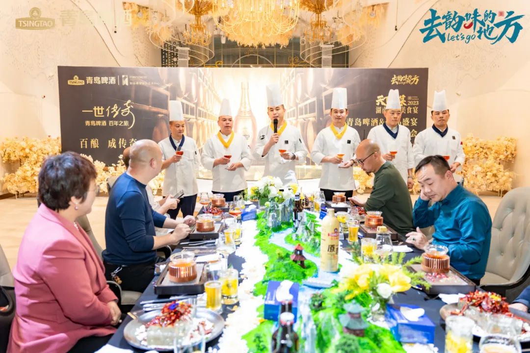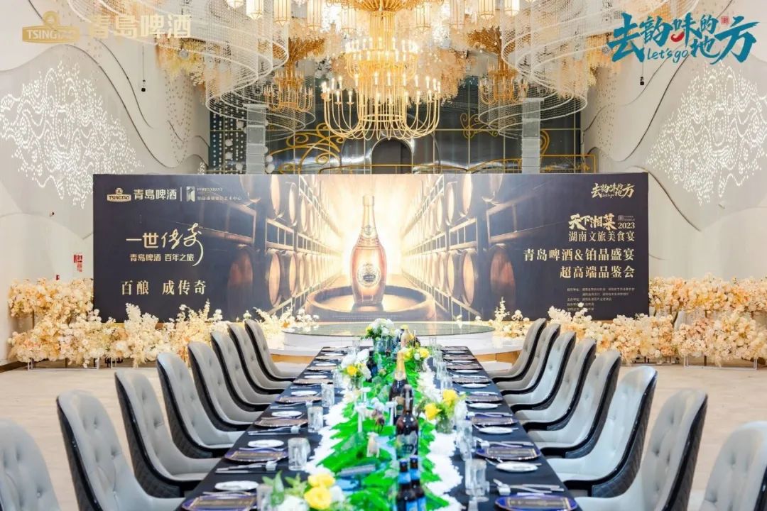 11月17日晚,天下湘菜-2023湖南文旅美食宴迎来“踏莎寻秋•珍馐四季”青岛啤酒&铂晶盛宴超高端品鉴会!品鉴晚宴由市湘菜产业促进会会长单位和盛餐饮集团旗下高端品牌——铂晶盛宴宴会艺术中心创作团队精心打造的国宴级位餐式超高端四季主题文化宴“珍馐四季”系列的秋季作品。