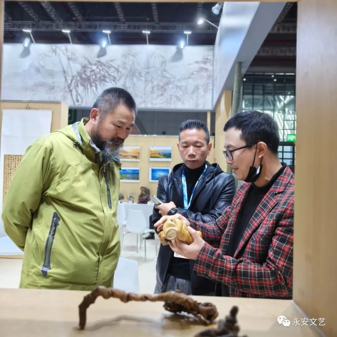 本次展览从11月16日开展后,吸引了大批的观众驻足观展,观众们对永安的文艺作品和竹文化、福文化表现出极大的兴趣,一些观众在观看之余,还与在现场展示永安传统竹刻技艺的艺术家及现场工作人员进行互动交流。短短几天的参展时间,永安参展的文艺作品共达成意向20余件,其中,有4幅竹刻字作品被深圳职业技术大学图书馆购买收藏,还与长三角多家设计公司达成合作意向。值得一提的是,一件异形竹作品与央美毕业参展商孟舒艺术工作室确定赴日合作参展。