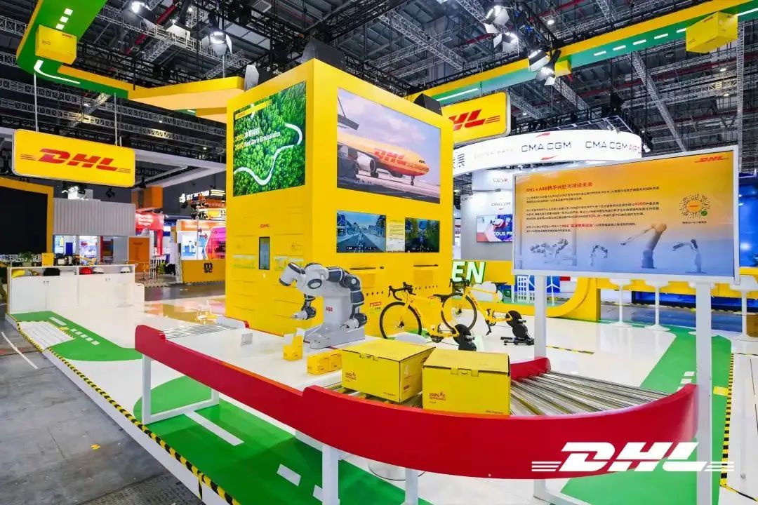 联邦快递的展台不仅设有专门的互动体验区,而且在电子商务区、创新科技区和特殊物品运输区,也都增添了互动内容,参观者可通过体感游戏及影音互动等多种方式领略联邦快递的卓越服务,更有趣的是现场观众能通过独特有趣的电动货运自行车骑行体验,感受联邦快递的低碳递送服务。 而UPS展台则配置多个互动大屏,让现场用户能够更直观地体验到UPS领先的强大物流综合实力和创新的数字化物流运输解决方案,并且为现场观众带来了多项精彩互动展示与趣味游戏体验;DHL还在现场设置了扫码测进博会碳足迹的小活动。 国内领头企业菜鸟,专门设置了“智能切箱”体验专区,鼓励与会者和人工智能比一比看谁打包更快、包装更节省。