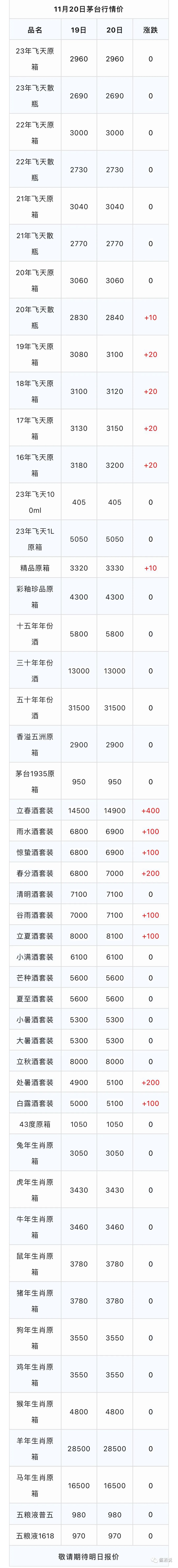 华茅(金奖) | 53度/500ml | 590 | 590 |