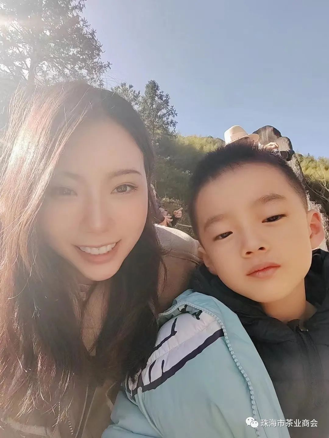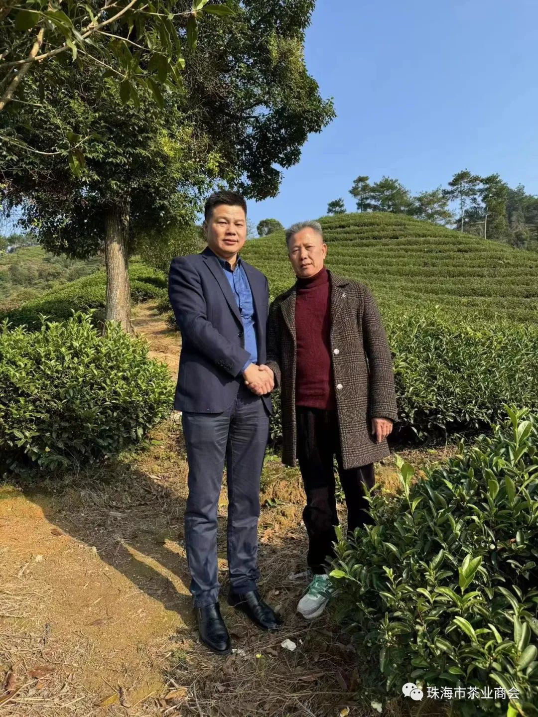 詹会长与江董在茶山上合影留念。