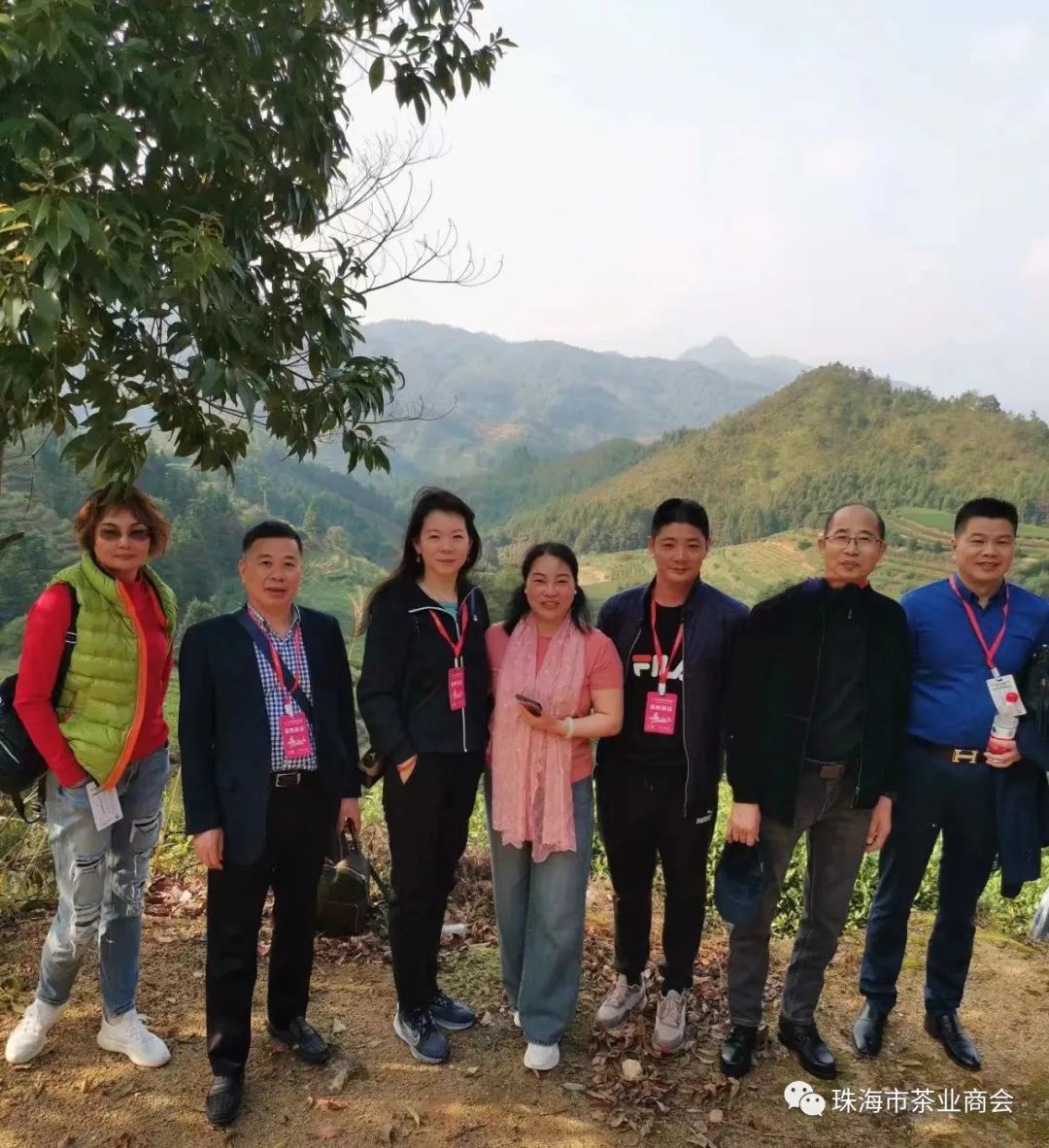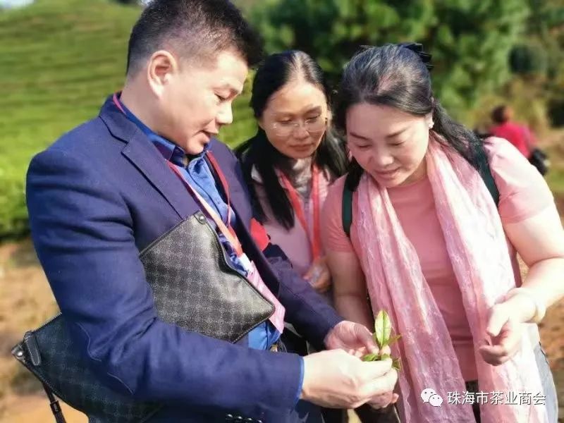 当日下午,为更好地让会员近距离学习武夷山岩茶,詹会长带领大家到达《武夷山茗希茶业有限公司》,获董事长江志良先生热情款待,亲自带考察团成员上江董的生态茶山学习,识茶树、辨茶叶......蓝天白云,青山绿叶,层叠茶梯,心情愉悦,在武夷山的岩茶园上留下了学习的脚印。
