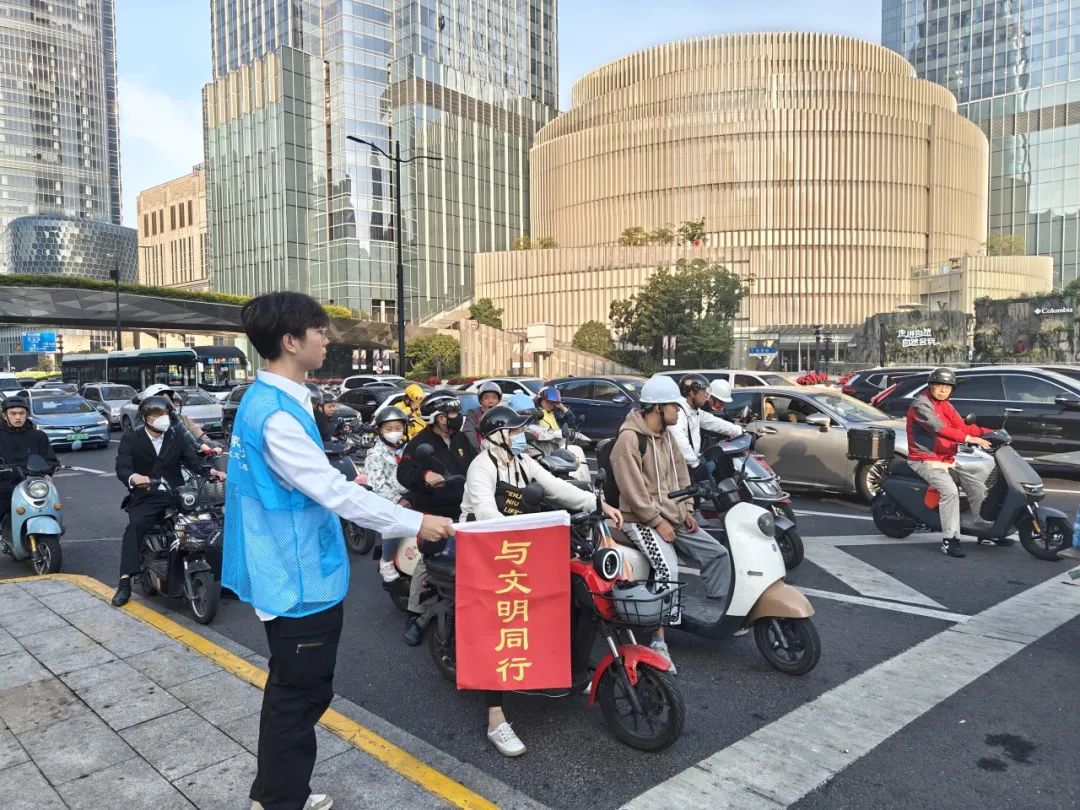 蓝外套、红马甲,是徐家汇商圈一道亮丽的风景线,上海研究院的青年志愿者们以实际行动传播文明风尚,为城市的文明交通和整洁环境贡献了自己的一份力量。