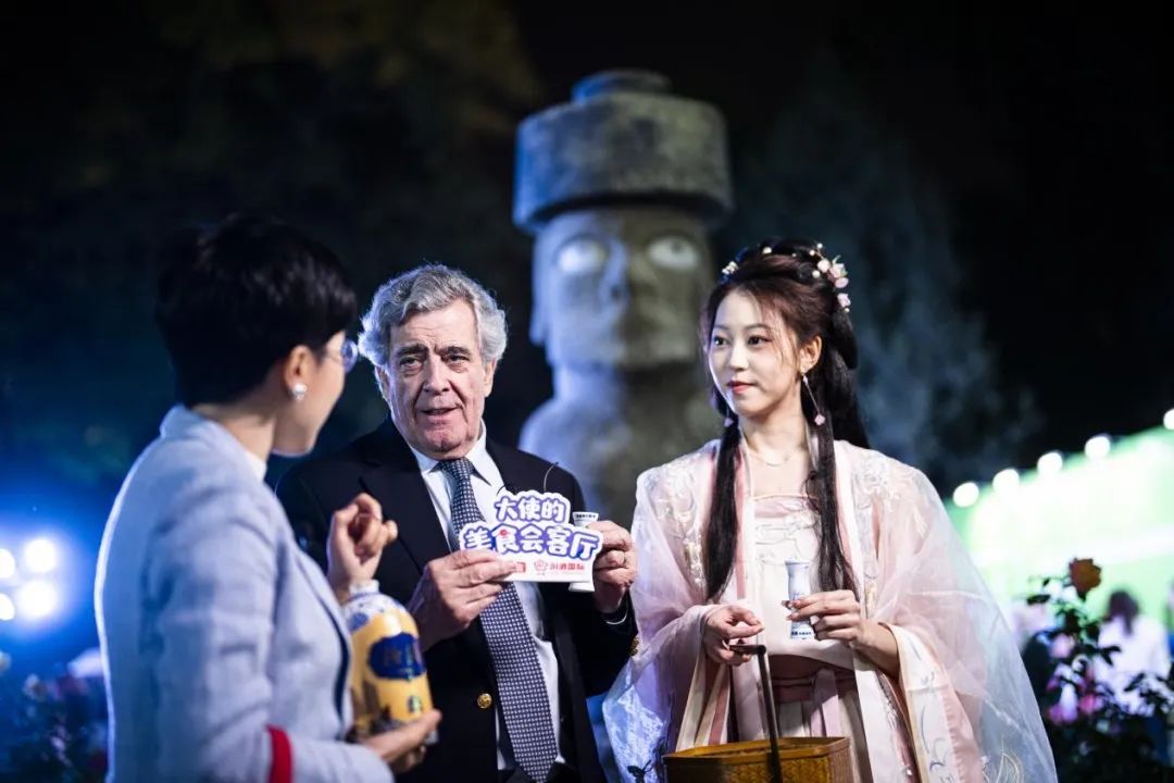 搜狐美食的《大使的美食会客厅》节目自开播以来,通过美食这座桥梁,让广大网友“云探访”诸多大使馆,在感受异国风情了解异域文化的同时,也品味了由汾酒书写的、带有浓郁白酒元素的中国故事。本期《大使的美食会客厅》适逢智利驻华大使馆举办智利周活动,搜狐美食化身来自宋朝仕女携带汾酒“穿越”到访,发现智利周活动如同《清明上河图》所描绘的集市,热闹非凡。