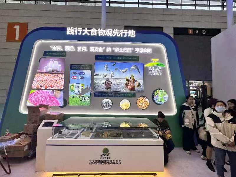 在丝博会黑龙江展厅,北大荒集团展示了寒地水稻生长发育智慧调控技术系统、数字化农业等现代化农业优势和生产现状,并围绕北大荒绿色智慧厨房,全方位展示精品、多源、高端的北大荒特色农产品,累计展出米、面、乳、酒水及预制产品200余款,签订合同金额近200万元,达成意向企业30余家。