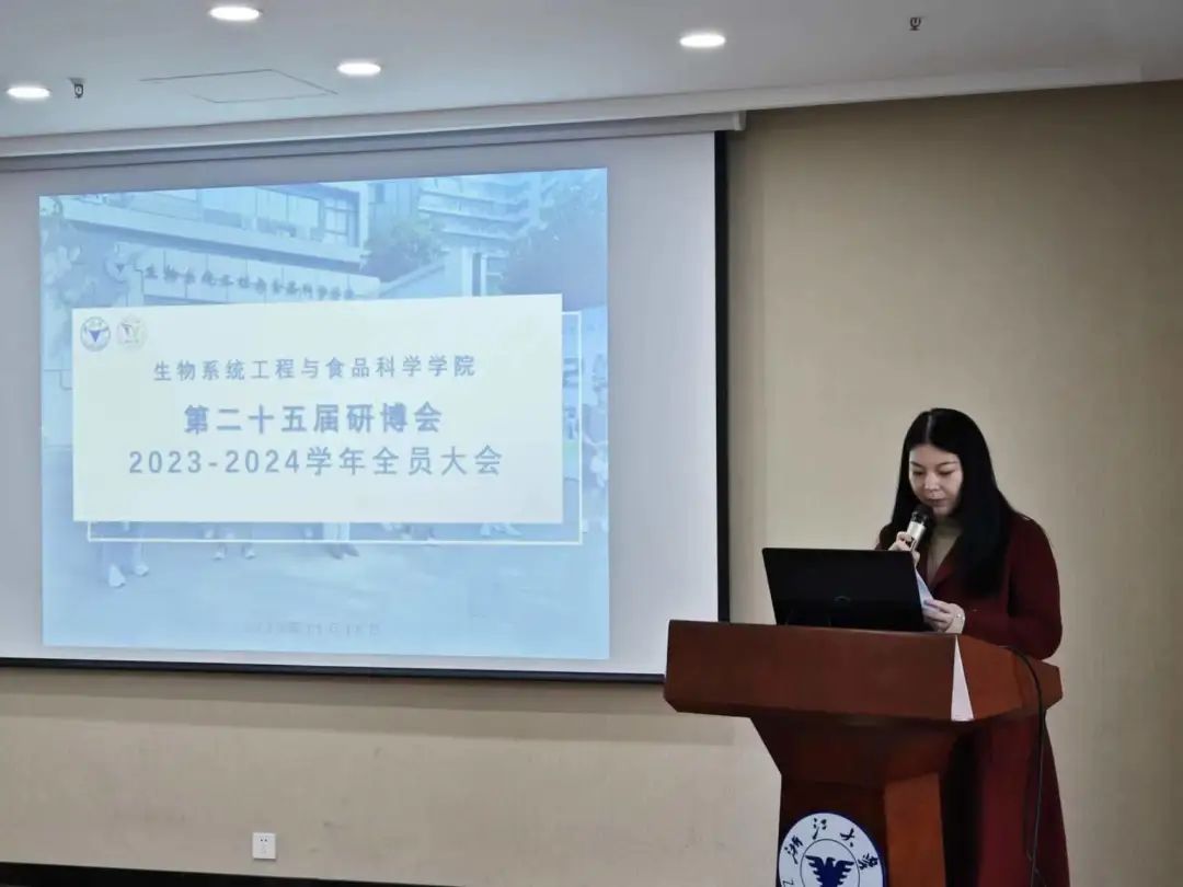 2023年11月16日,浙江大学生工食品学院第二十五届研博会第一次全员大会于D416报告厅召开。生工食品学院团委书记梅玫,第二十四届主席团成员杨瑞敏,第二十五届主席团成员陈博、姚鉴芯、汪舒以及第二十五届研博会全体成员参加大会。大会由汪舒主持。