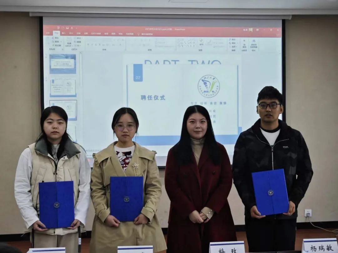 姚鉴芯介绍了办公室、文体部、学术部、宣传部的分工情况及相应工作,并提出了日常工作的考核标准,设立了奖惩机制。