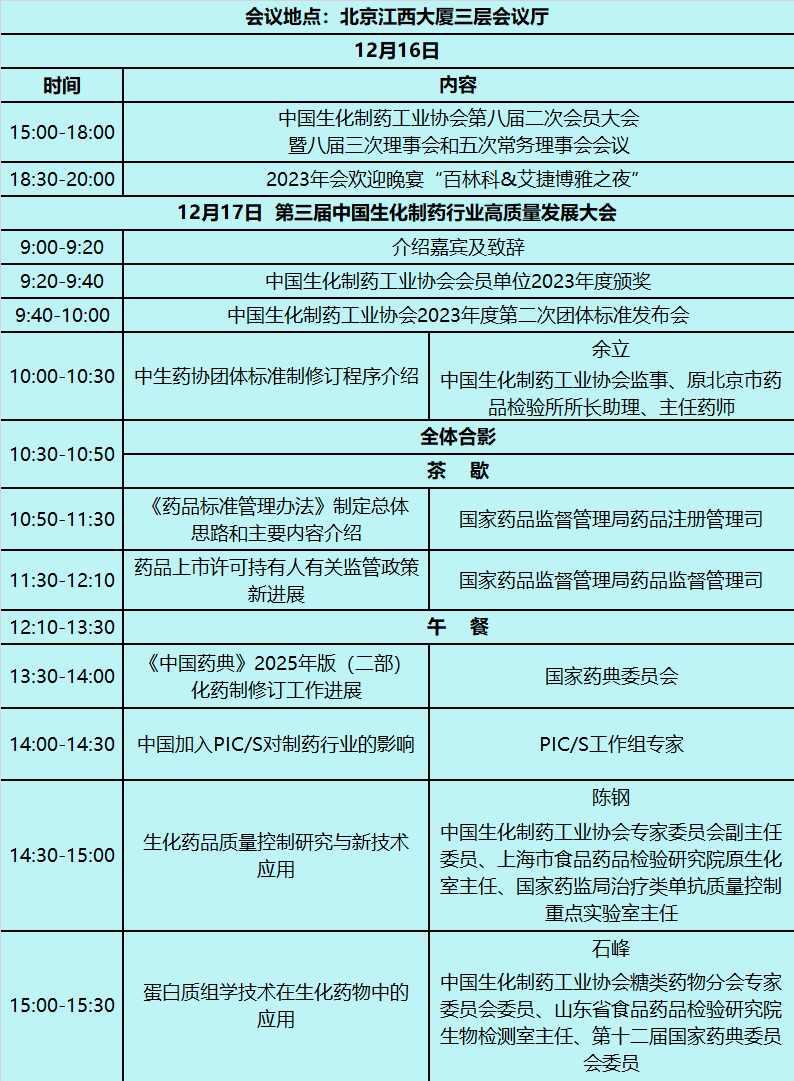 中国生化制药工业协会将于2023年12月16-17日在北京召开“第三届中国生化制药行业高质量发展大会暨2023中国生化制药工业协会年会”。
