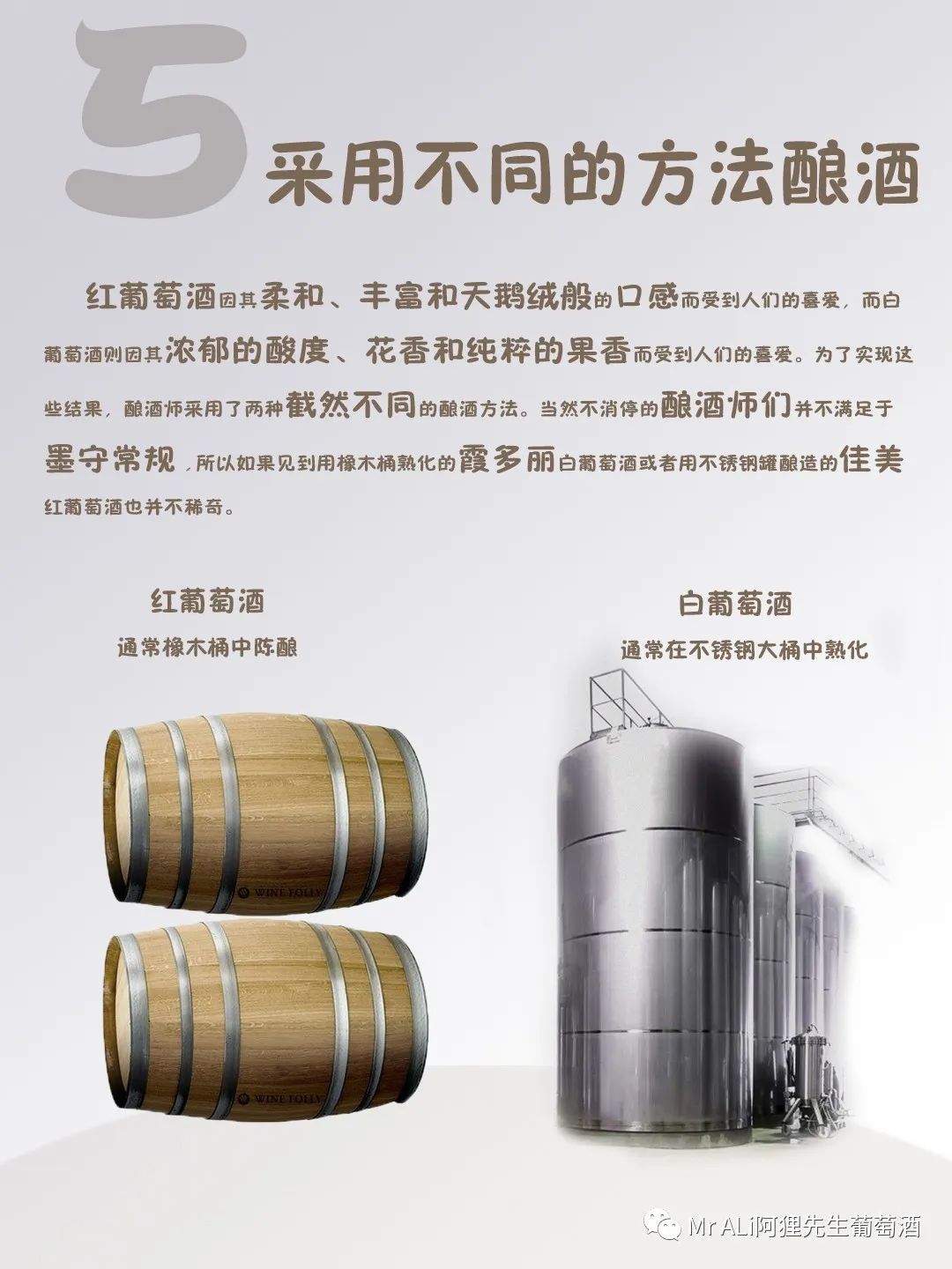 红葡萄酒因其柔和、丰富和天鹅绒般的味道而受到人们的喜爱,而白葡萄酒则因其浓郁的酸度、花香和纯粹的果香而受到人们的喜爱。为了实现这些结果,酿酒师采用了两种截然不同的酿酒方法。红葡萄酒酿造和白葡萄酒酿造之间的最大区别是氧化,导致葡萄酒失去花香和果香,转而获得丰富的坚果风味和更加顺滑的口感。为了增加氧气,酿酒师使用橡木桶,因为橡木桶呼吸并允许葡萄酒吸收氧气。为了减少与氧气的接触,酿酒师使用不锈钢罐,以确保葡萄酒保留其果香和花香。