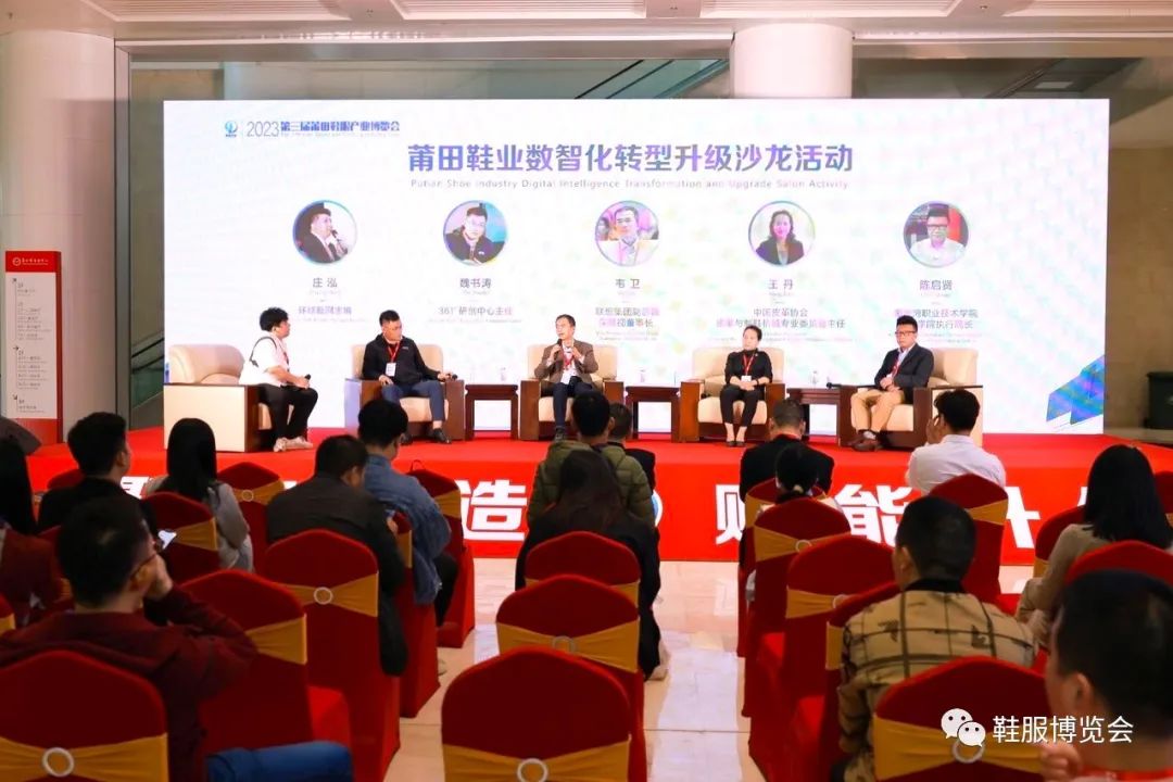 为了提高展会价值,更好服务展商和观众,全方位解读鞋业发展方向和方案,组委会组织了“莆田鞋业数智化转型升级沙龙”活动。活动由环球鞋网庄泓主持、中国皮革协会皮革与制鞋机械专业委员会王丹主任、湄洲湾职业技术学院工匠学院陈启贤执行院长、361°研创中心主任魏书涛博士、联想集团副总裁、深慧视董事长韦卫博士及现场参展商、观众和鞋业厂商、行业媒体、网红主播等200余位代表出席。