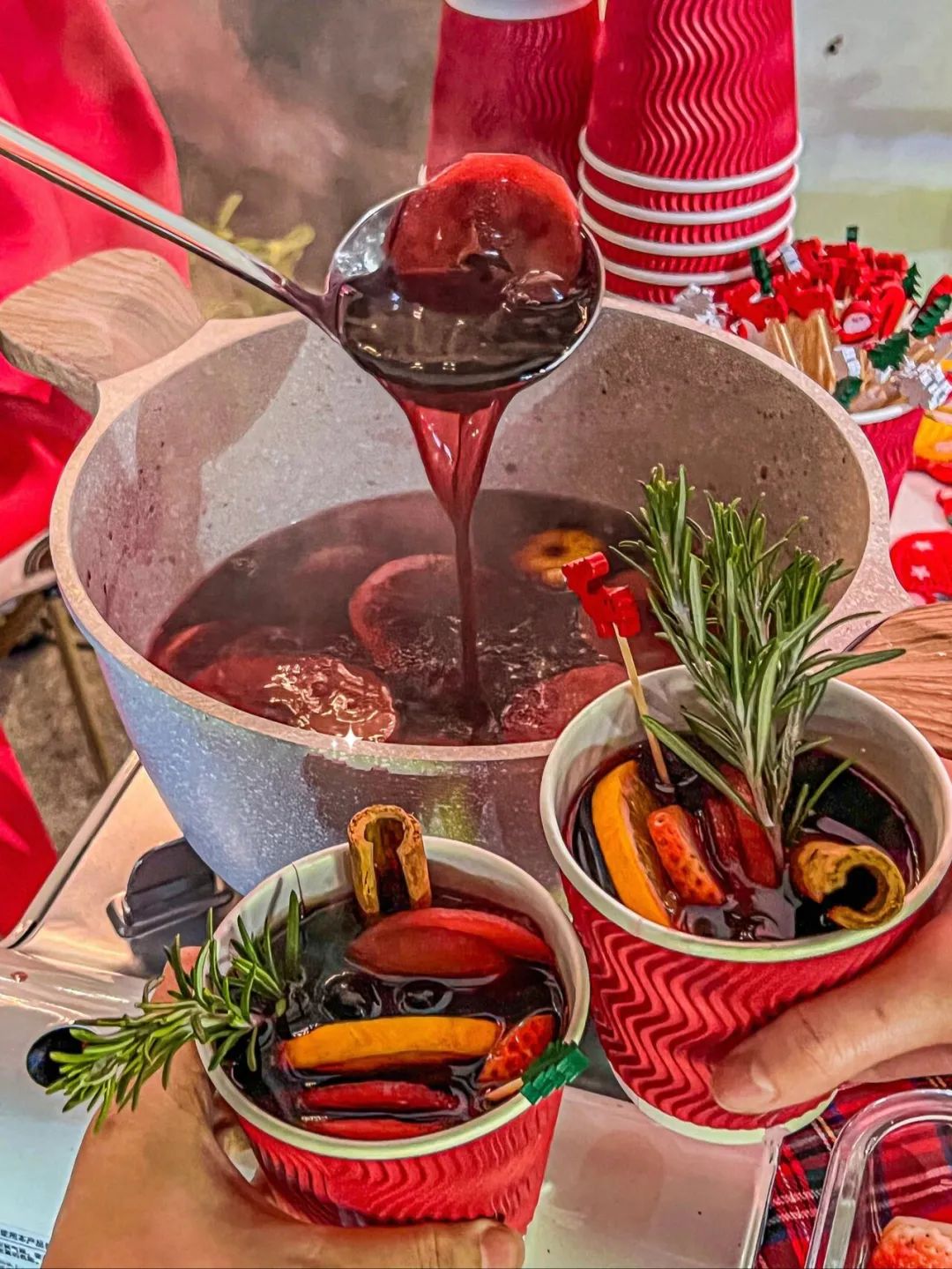 热红酒入口温暖,似乎能够穿透寒冷的冬日