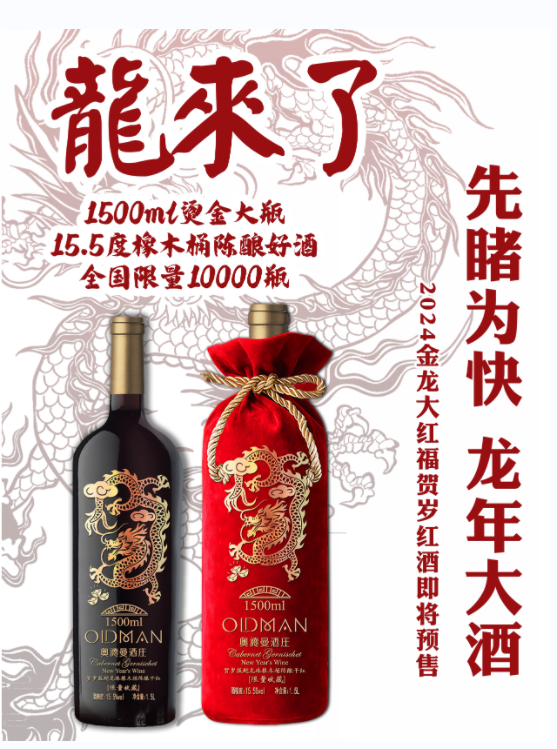 奥德曼2024金龙大红福生肖红酒12月1日即将预售!数量有限,时间有限,抓紧预定!预售结束,即将恢复原价!错过再等12年!