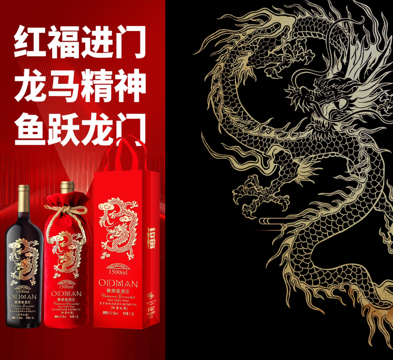 奥德曼龙年生肖贺岁大红福,就是给大家奉献了一瓶能量满满的“大金龙”!祝福您的本命年红红火火、平平安安、顺顺利利、大吉大利!奥德曼酒庄为2024年龙年金龙大红福起名叫“上上龙”生肖酒,寓意得到他的人龙年上风上水,“龙”翔九天,“龙”腾盛世,“龙”马精神,生“龙”活虎,“龙”举云兴!祝福属龙人生活事业蒸蒸日上、梦想成真,“龙”行天下、“龙”运通达!