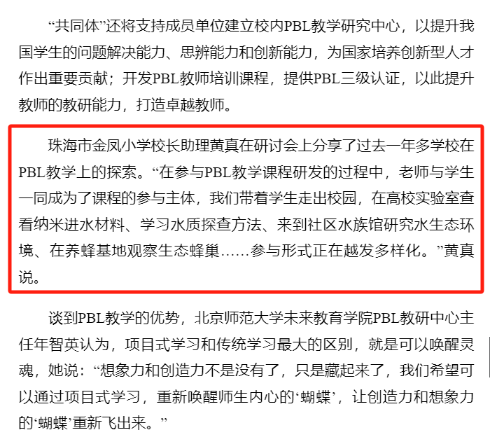 “全国PBL教学研究共同体”依托北京师范大学未来教育学院PBL教学与研究中心,搭建高校与中小学在项目式教学方面的跨界共同体,致力于搭建专家型PBL教研指导团队,建立高水平PBL队伍。我校有幸成为“全国PBL教学研究共同体”成员校,将在北师大的引领下,“全国PBL教学研究共同体”平台上,进一步探索PBL在学校教师教育与学生课程上内涵式发展。