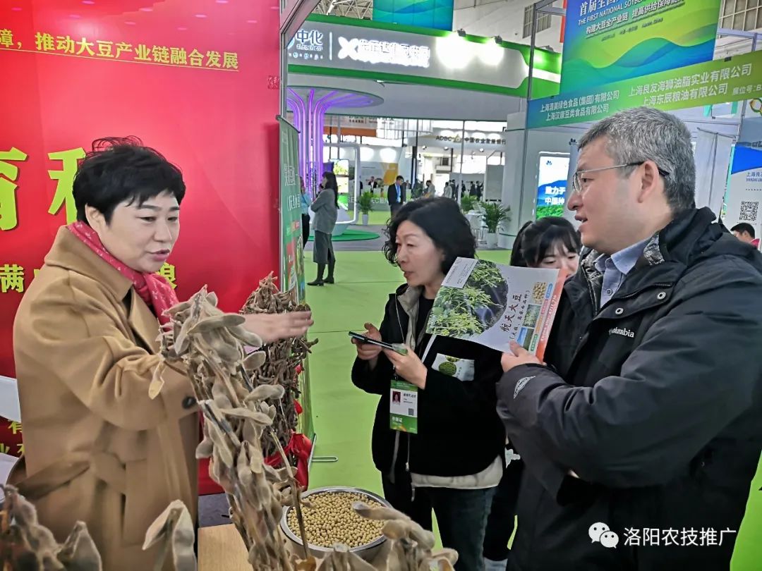 在哈尔滨国际会展中心展览厅,我中心技术人员与山西大槐种业有限公司、豫煌种业、北京农联双创科技有限公司、河南省农科院等10多家种业进行了交流洽谈和对接,就2024年大豆新品种引进示范达成了初步意向。