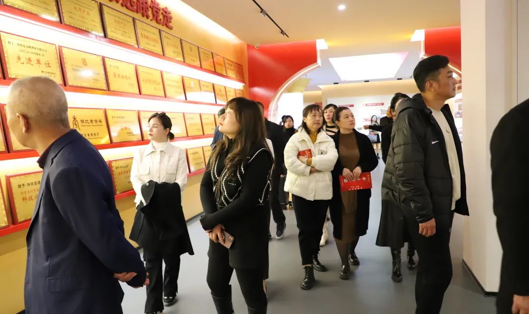 最后,大家来到党建活动中心参观学习。展馆内展品内容丰富,主题策划鲜明,展示制作精美,组织的党建活动丰富多彩。文峰酒业将党建工作深度融入到企业生产、管理、经营各个环节,以政治引领、党旗领航,为企业稳健发展指明了方向,企业党建工作已然成为钟祥民营企业的一面旗帜。