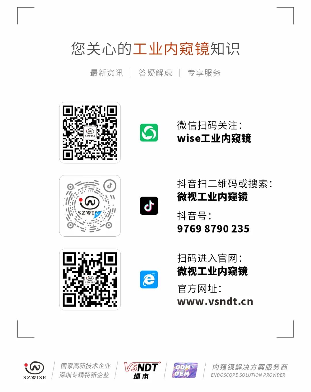 以“开放合作、共赢共享”为主题的2023中国海洋经济博览会将在11月23日-25日在深圳福田会展中心举办;深圳微视将携带自主研发的WS-F系列、WS-Y系列、WS-K系列、WS-P系列等主推工业内窥镜产品,为海洋船舶综合检测技术提供解决方案和检测案例,深圳微视展位号:1号馆1D072、1D073;我们诚挚邀请业内专业人士莅临展位现场,和我们共同分享无损检测的技术经验和成果。