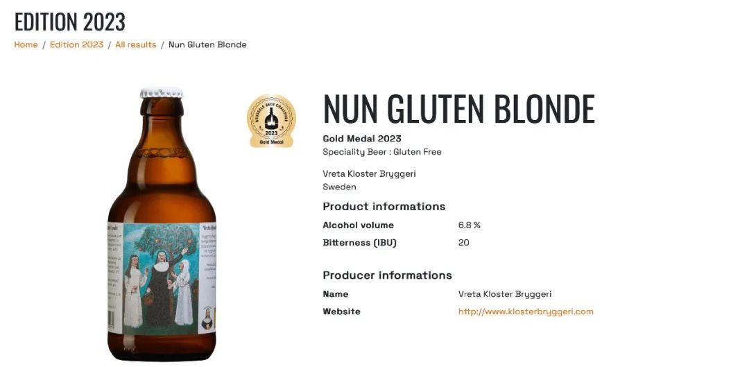 无麸质啤酒的趋势强劲,该类别有创纪录的30款啤酒。其中,瑞典的NUN GLUTEN BLONDE和比利时的Bavaria Pilsener Glutenfree获得了无麸质类别金牌。麸质不耐受的朋友可以尽情享用这些高质量的啤酒!