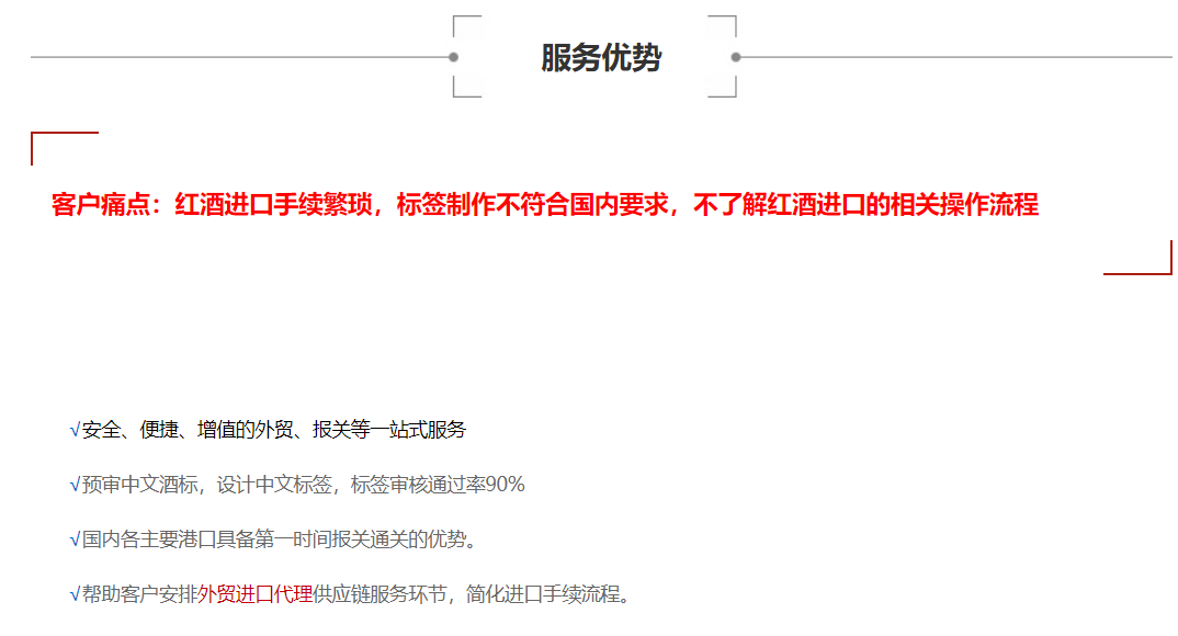注意:进口红酒对包装标签等都要求比较规范,如果标签不合格可能会要求整改或者退运,如果红酒有打木架或木托,一定要有ippc标识。