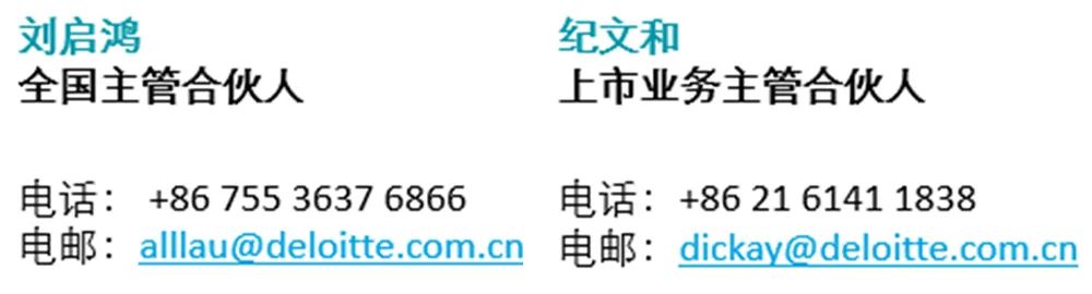 德勤期待与优秀企业家携手,在资本化议题上深入交流,助力中国的食品与餐饮企业在资本市场实现高质量发展。如您需要有关企业上市的咨询建议,欢迎联系德勤中国资本市场服务部: